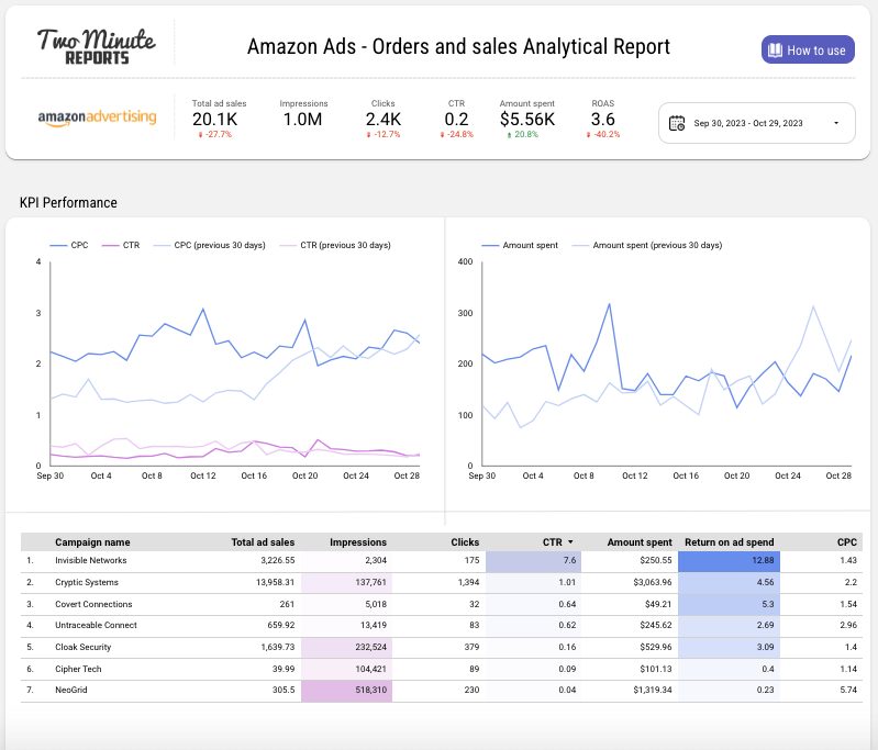 An Amazon PPC Google Sheet Branded Dashboard Template Upwork