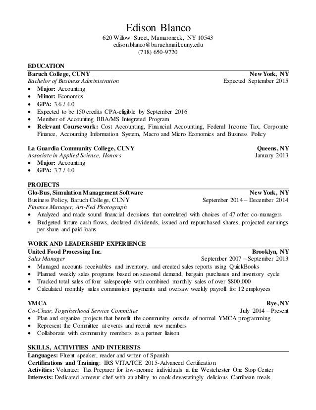 Resume Baruch College