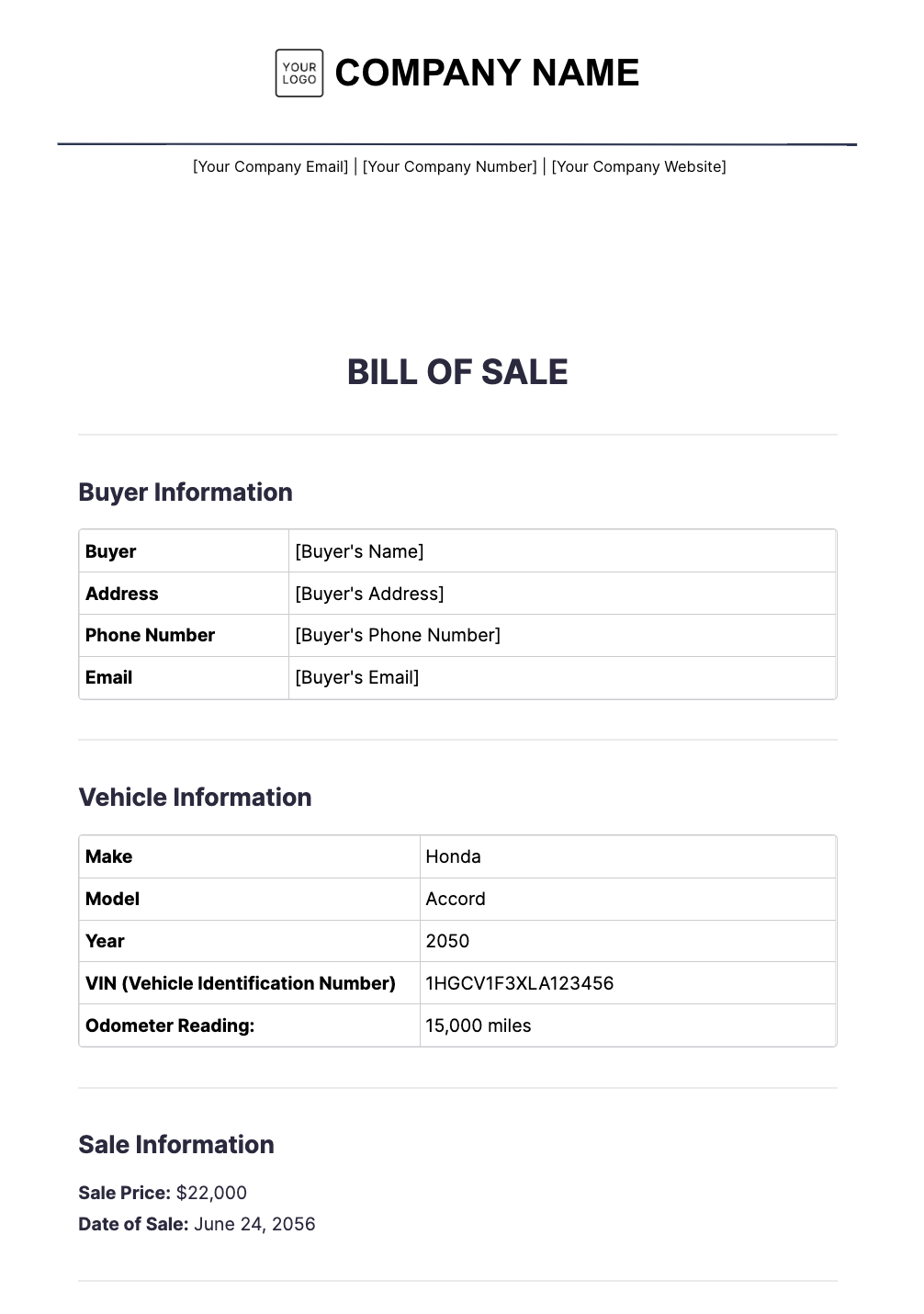 Create A Professional Bill Of Sale Document Online With Template.net’s Free Bill Of Sale Templates.