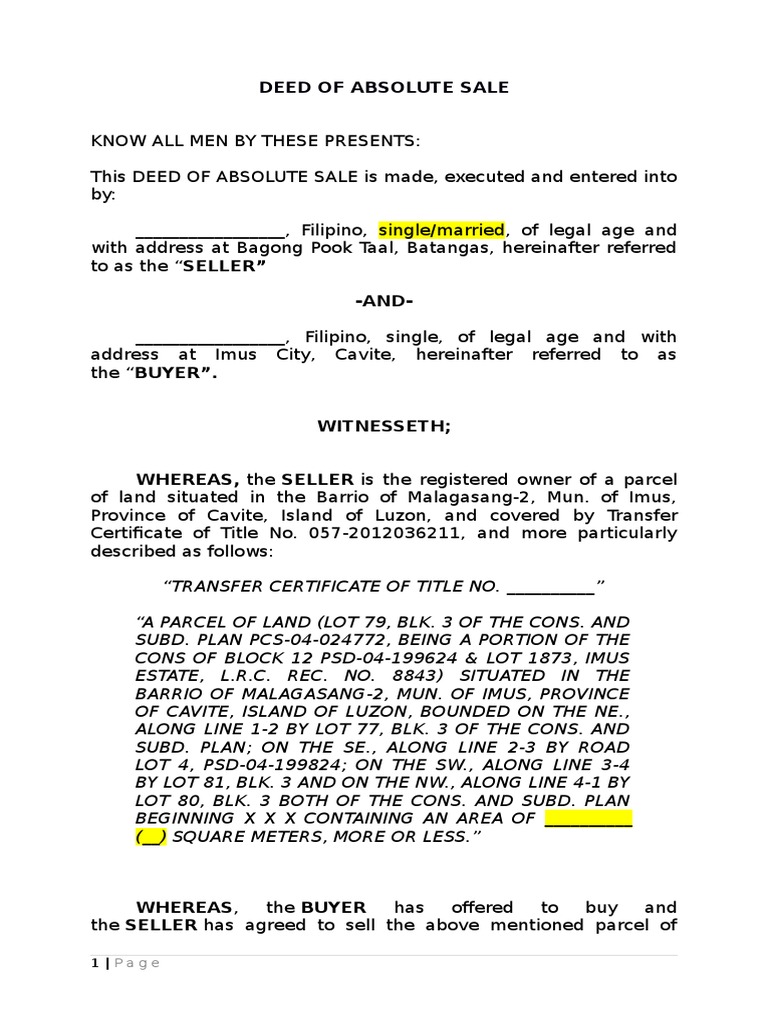 Sample Format Of Deed Of Absolute Sales.