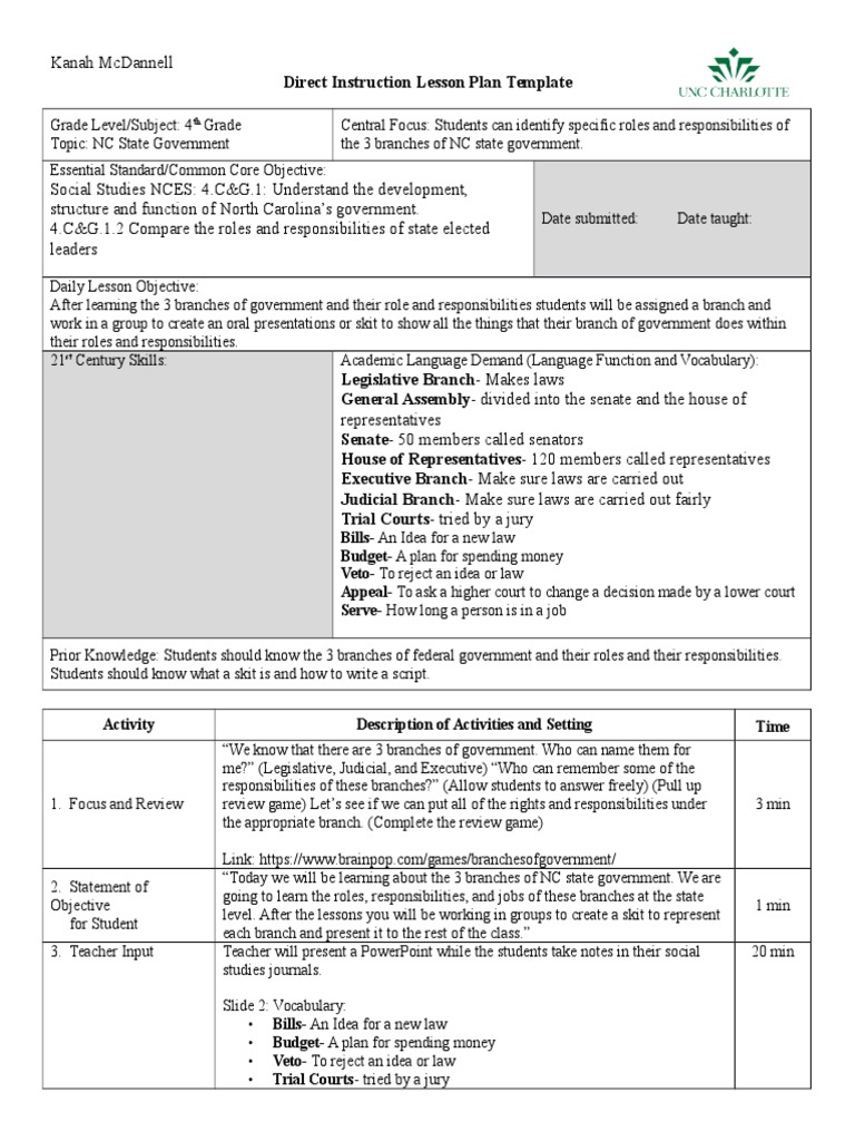 Top Direct Instruction Lesson Plan Templates free to download in PDF format