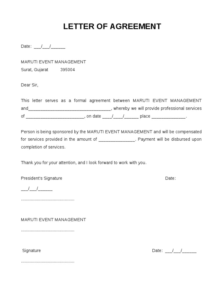 Letter Of Agreement Template Format Of Writing An Agreement Letter