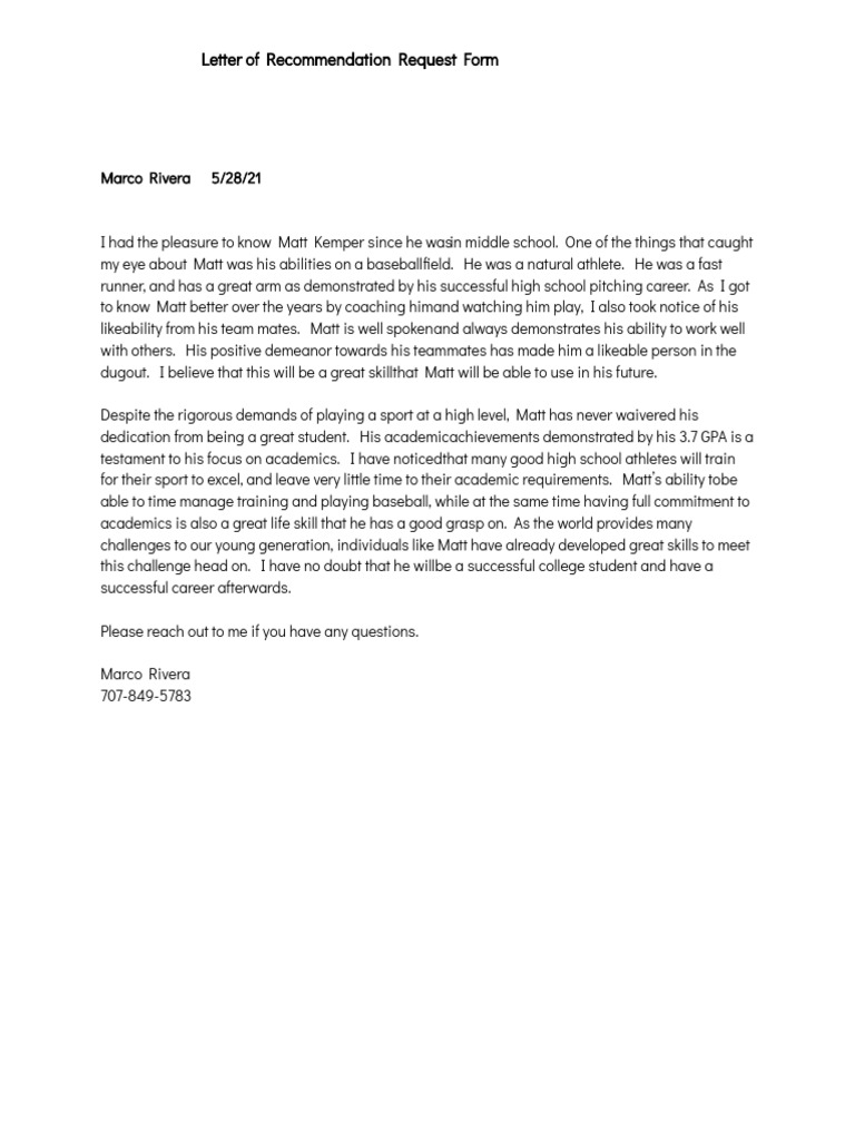 Letter Of Rec Request Template