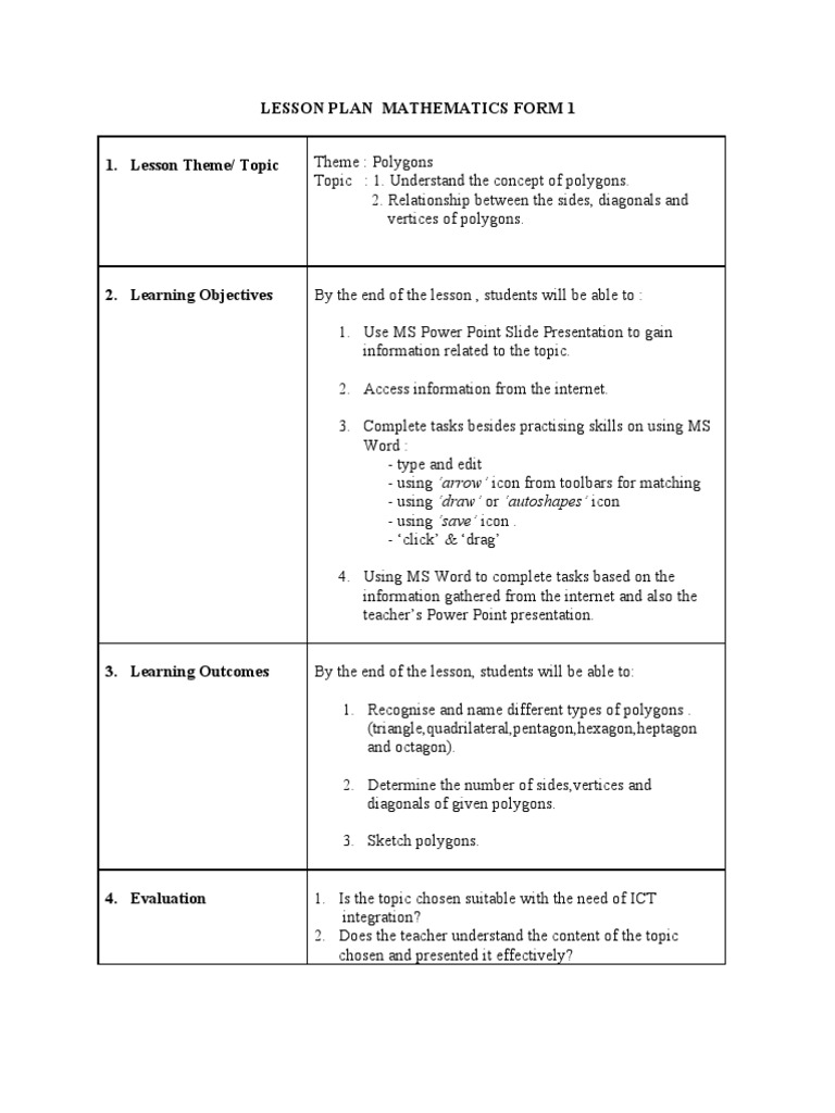 Math Lesson Plan Template Word Templates for Free Download