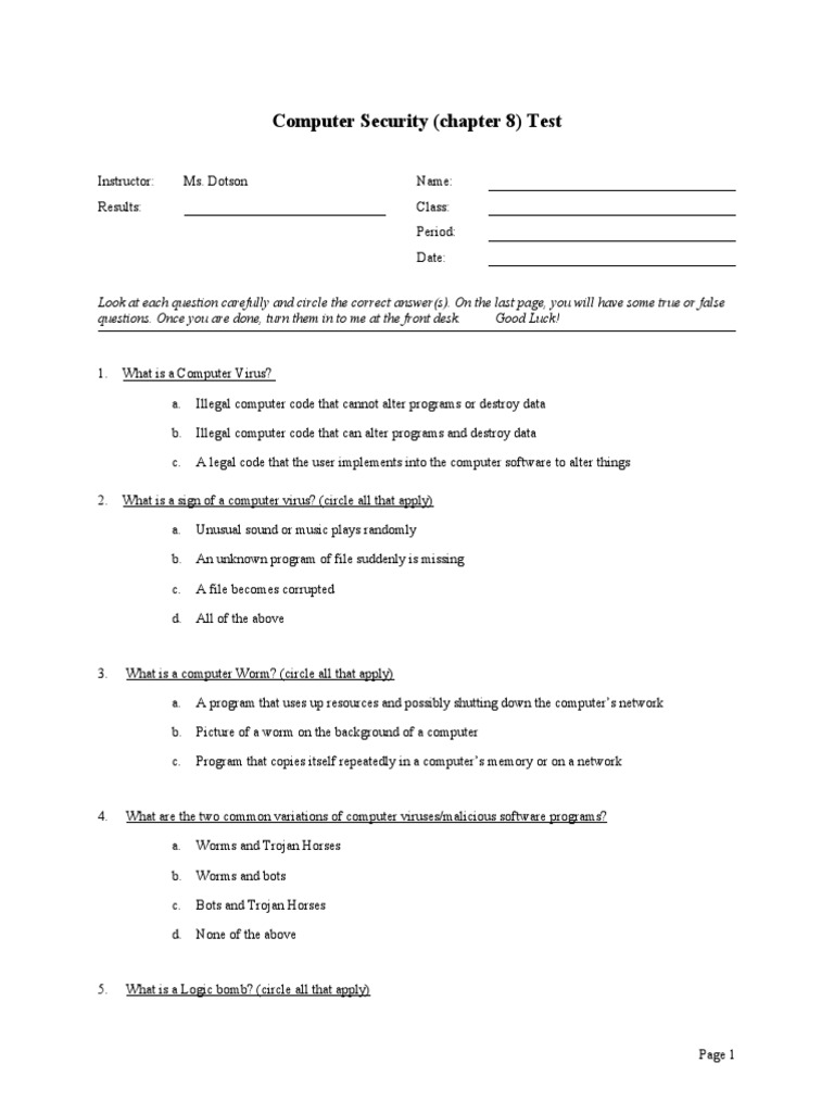 Multiple Choice Test Template PDF Computer Virus Backup