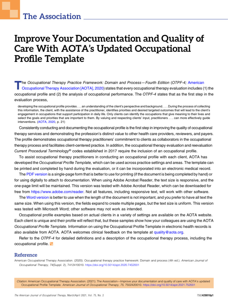 AOTA's Updated Occupational Profile Template PDF Occupational