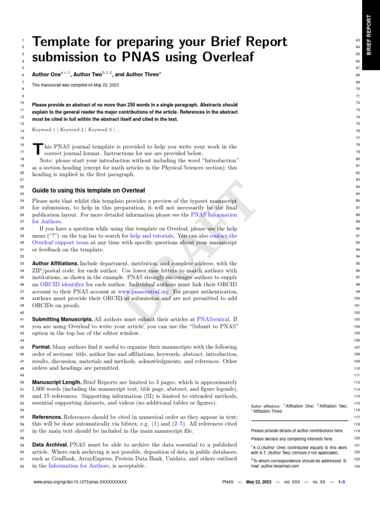 Template For Preparing Your Brief Report Submission To Pnas Using