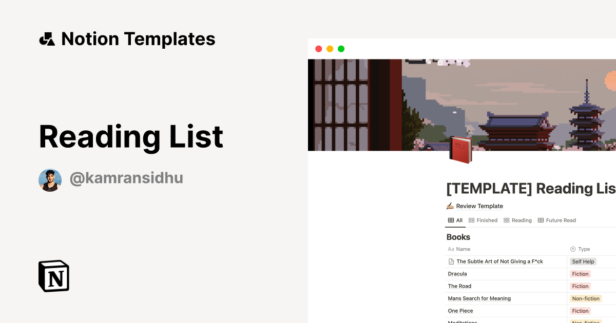 Reading List Template by Kamran Sidhu Notion Marketplace