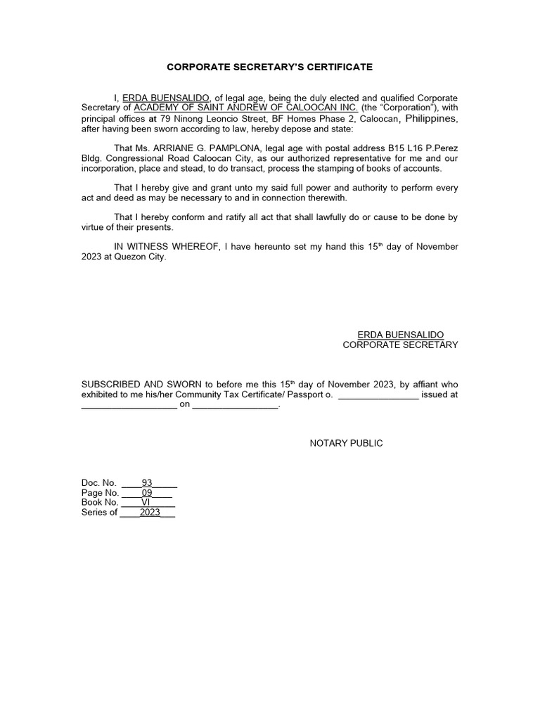 Secretary's certificate SAMPLE.doc