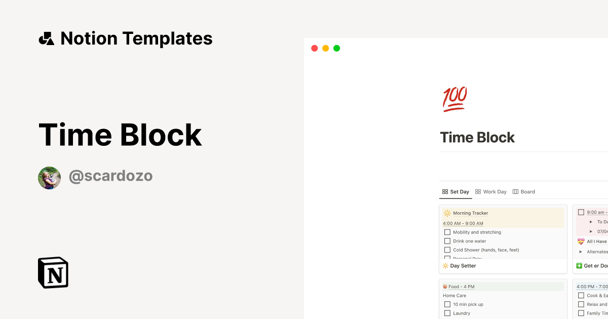 Time Block Template by Stephanie Cardozo Notion Marketplace