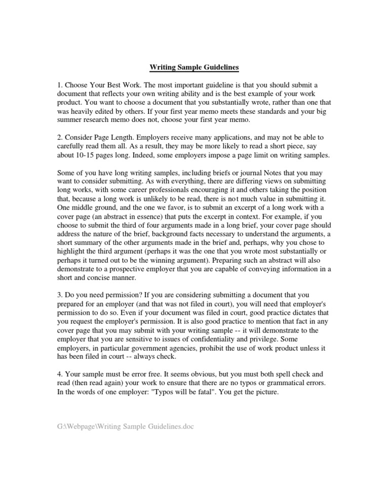 Writing Sample Guidelines Business